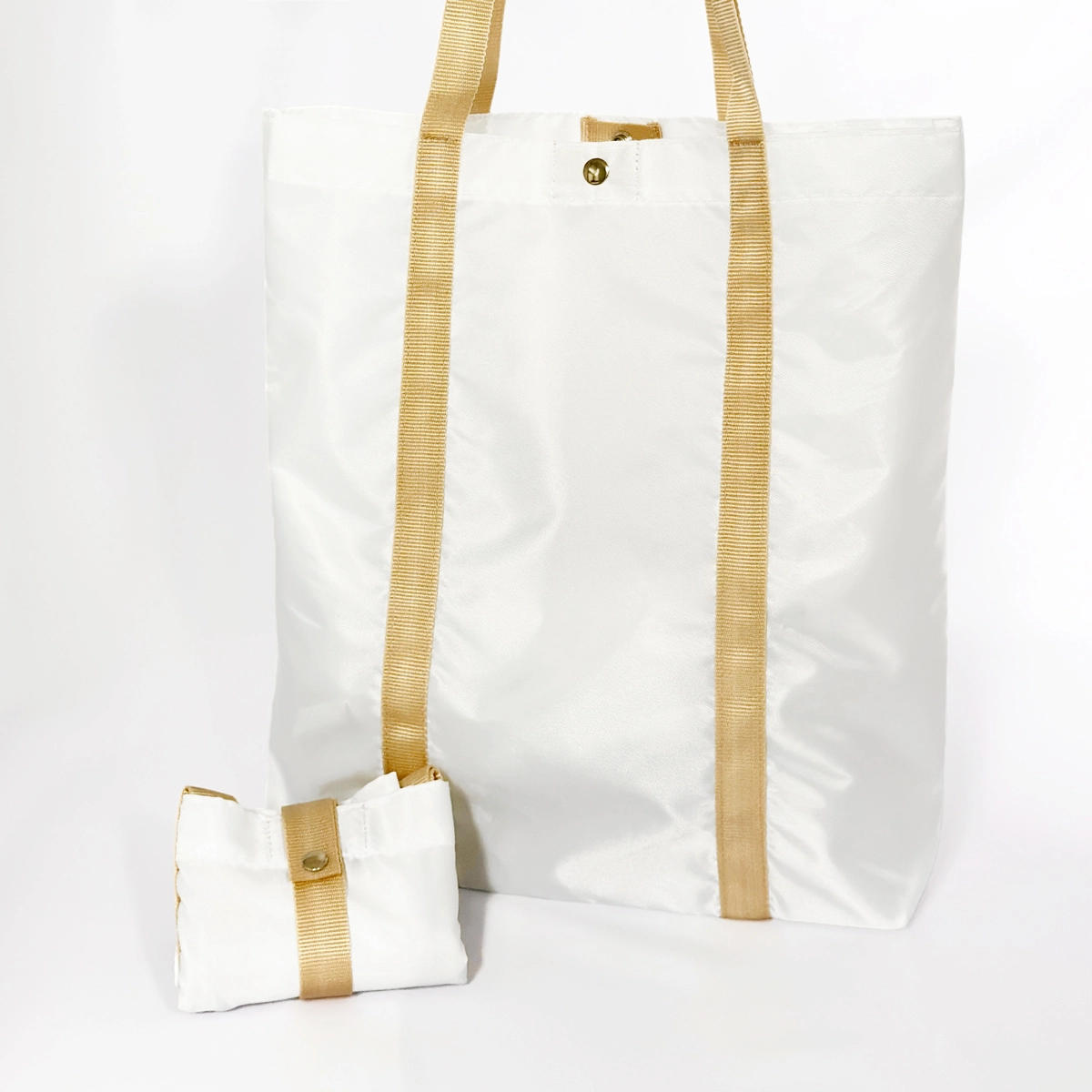กระเป๋าผ้าใบใหญ่จากผ้าร่ม เนื้อผ้าบางเบา ใส่ของได้จำนวนมาก แต่จุดเด่นที่สุดคือ รุ่นนี้สามารถพับเก็บได้ แถมยังใช้งานสะดวกมากๆ