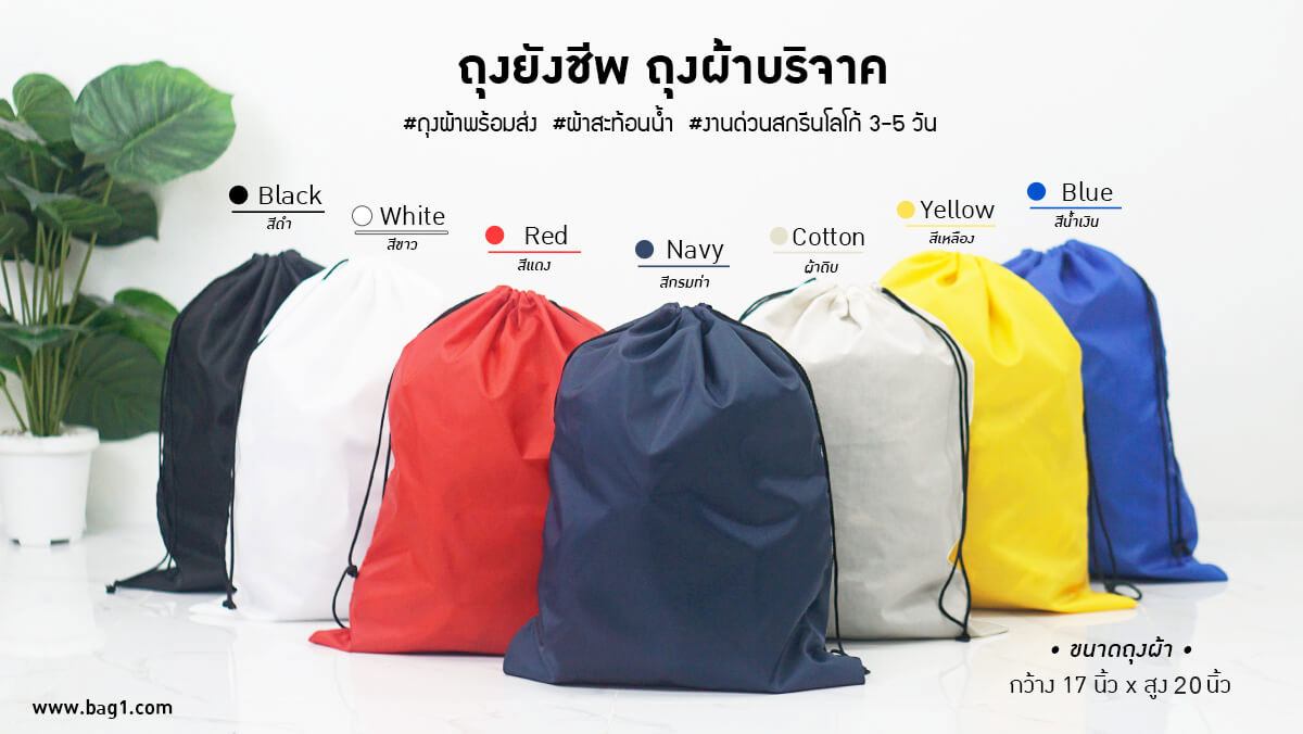- เหมาะเป็นอย่างมากสำหรับลูกค้าที่ต้องรีบใช้งานด่วน เพราะเรามี ถุงยังชีพ และ ถุงผ้าบริจาค สต็อกพร้อมส่งให้กับลูกค้าอยู่แล้ว